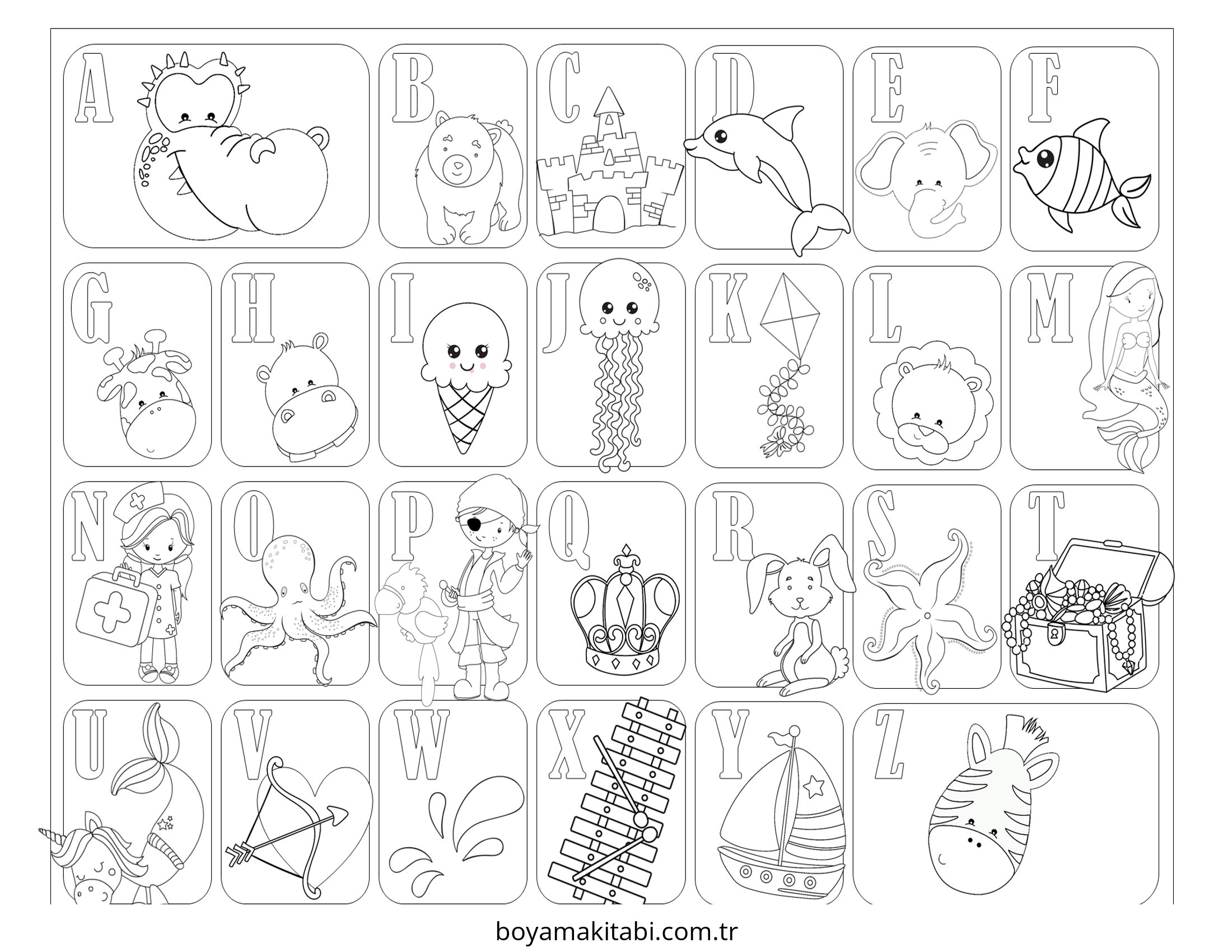ABC temalı bu boyama sayfası çocuklar için evde etkinlik ve ücretsiz yazdır bir etkinlik sunar. Ücretsiz olarak indirip yazdırabilir, evde keyifli bir boyama zamanı oluşturabilirsiniz.