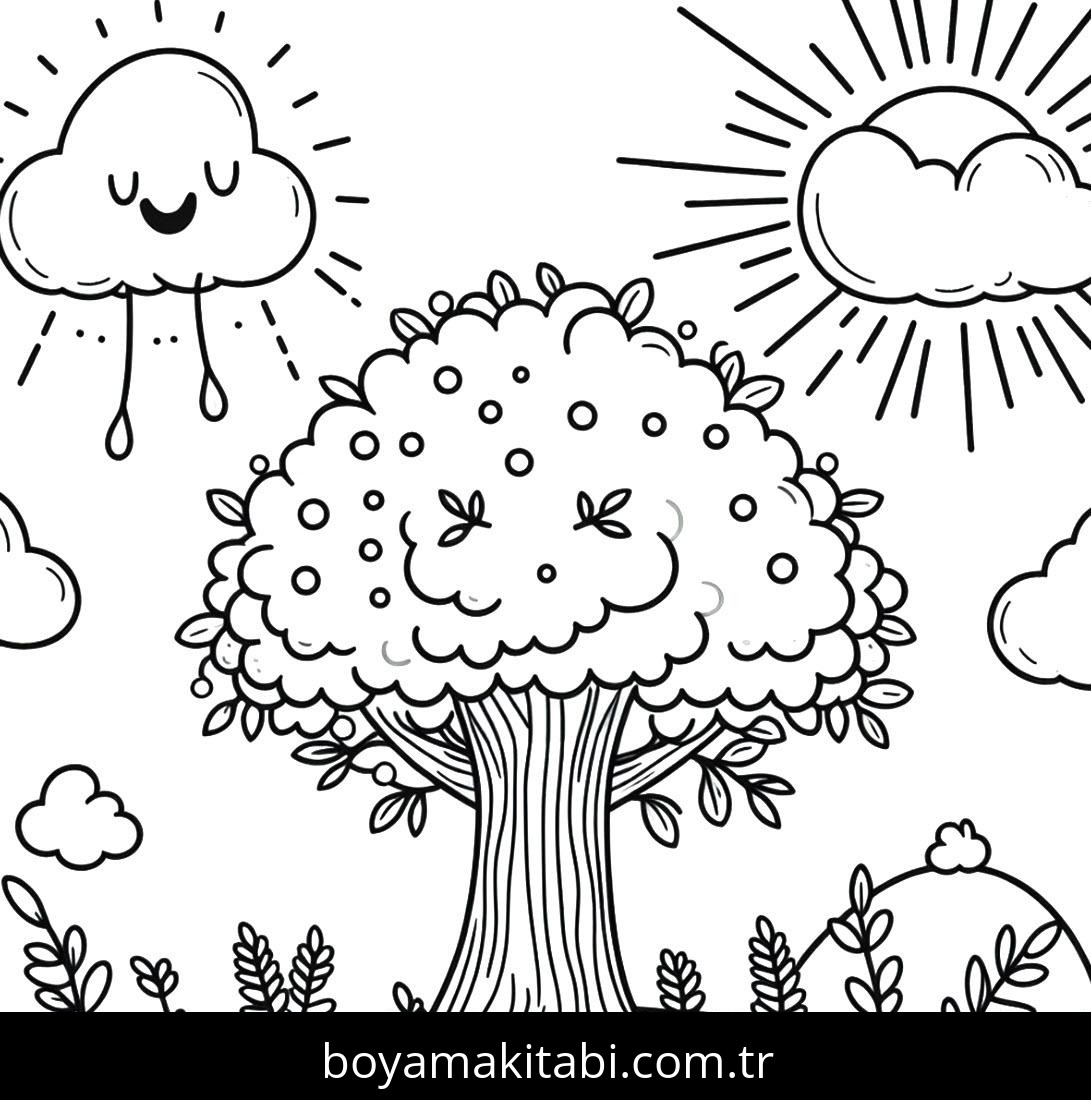 Ağaç Boyama Sayfaları ve Eğlenceli Etkinlikler. Ağaç Eğlenceli Boyama Sayfaları, Ağaç boyama sayfası, coloring page, karakterli, çizgi, mutlu