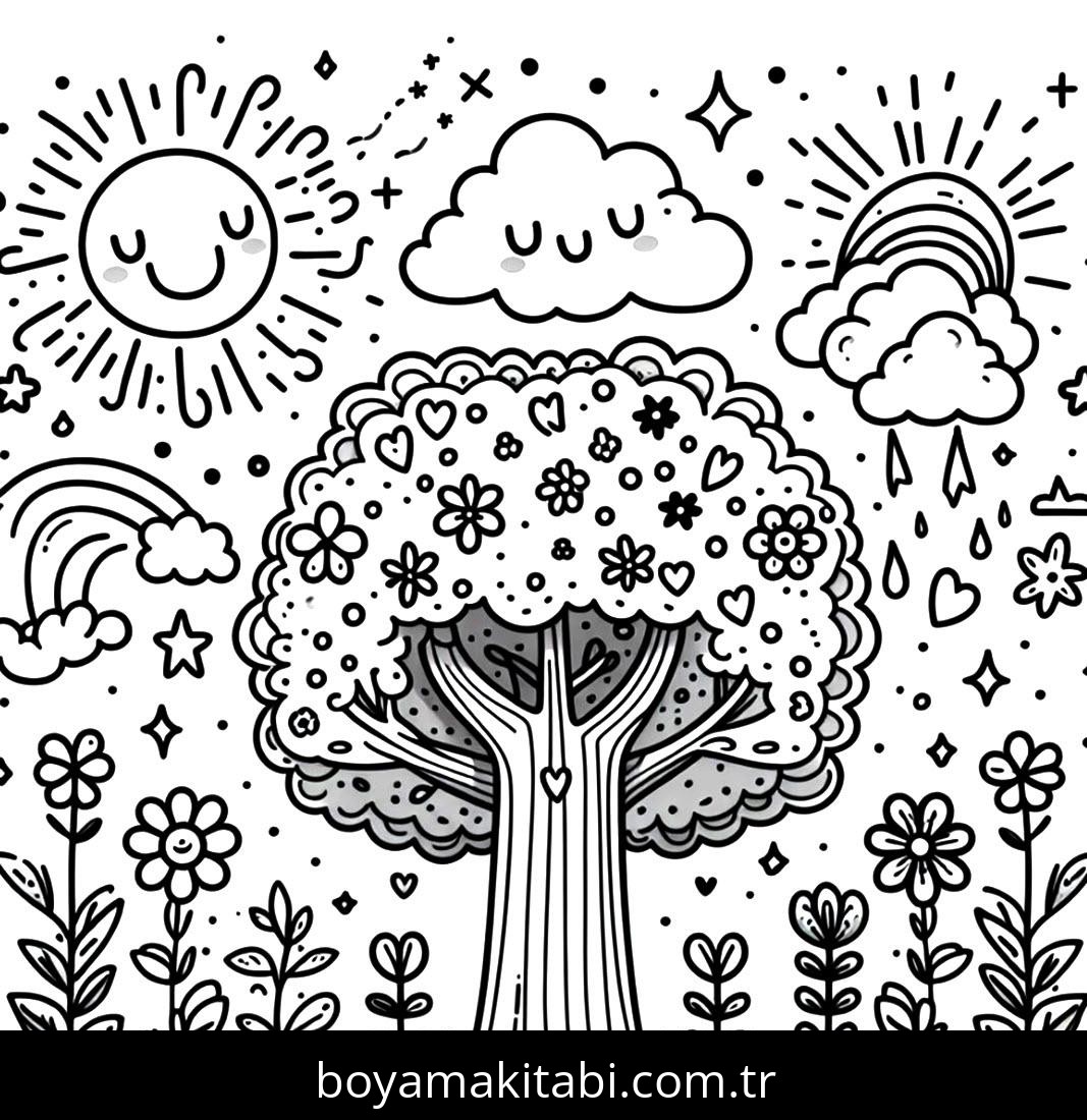 Ağaç Boyama Sayfaları ve Eğlenceli Etkinlikler. Ağaç Eğlenceli Boyama Sayfaları, Ağaç boyama sayfası, coloring page, masalsı, harika, şirin