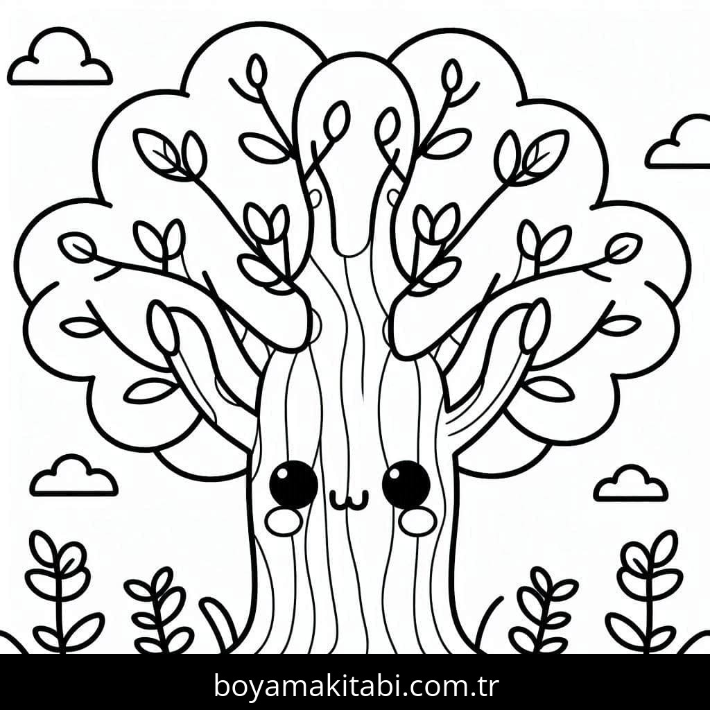 Ağaç temalı bu boyama sayfası çocuklar için kolay boyama ve eğitici aktivite bir etkinlik sunar. Ücretsiz olarak indirip yazdırabilir, evde keyifli bir boyama zamanı oluşturabilirsiniz.