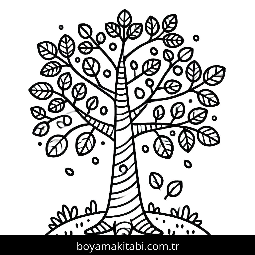 Ağaç temalı bu boyama sayfası çocuklar için renkli çizimler ve okul öncesi bir etkinlik sunar. Ücretsiz olarak indirip yazdırabilir, evde keyifli bir boyama zamanı oluşturabilirsiniz.