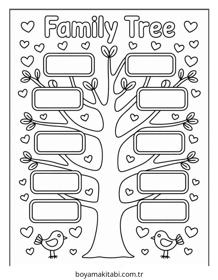 Aile temalı bu boyama sayfası çocuklar için yaratıcılığı geliştirir ve keyifli zaman bir etkinlik sunar. Ücretsiz olarak indirip yazdırabilir, evde keyifli bir boyama zamanı oluşturabilirsiniz.
