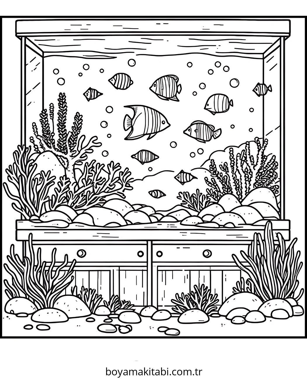 Akvaryum temalı bu boyama sayfası çocuklar için kolay boyama ve eğitici aktivite bir etkinlik sunar. Ücretsiz olarak indirip yazdırabilir, evde keyifli bir boyama zamanı oluşturabilirsiniz.