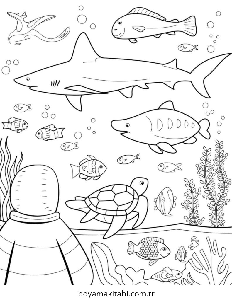 Akvaryum temalı bu boyama sayfası çocuklar için evde etkinlik ve ücretsiz yazdır bir etkinlik sunar. Ücretsiz olarak indirip yazdırabilir, evde keyifli bir boyama zamanı oluşturabilirsiniz.