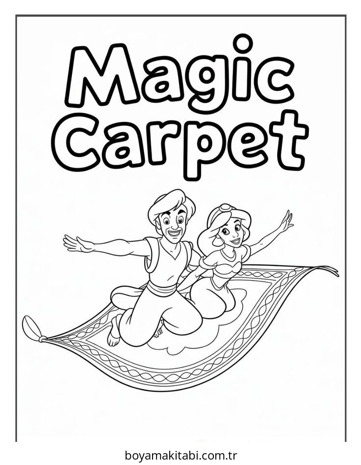 Aladdin temalı bu boyama sayfası çocuklar için boyama çalışması ve yaratıcılığı geliştirir bir etkinlik sunar. Ücretsiz olarak indirip yazdırabilir, evde keyifli bir boyama zamanı oluşturabilirsiniz.