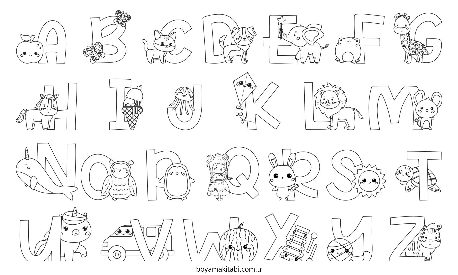 Alfabe temalı bu boyama sayfası çocuklar için PDF indir ve sevimli karakter bir etkinlik sunar. Ücretsiz olarak indirip yazdırabilir, evde keyifli bir boyama zamanı oluşturabilirsiniz.