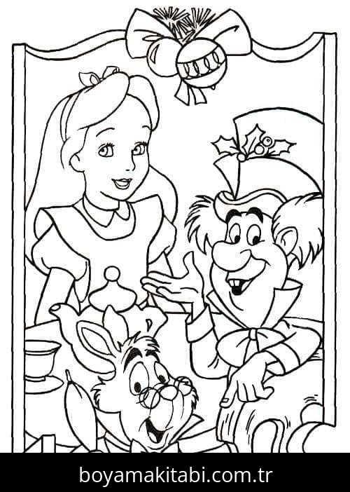 Alis Harikalar Diyarında temalı bu boyama sayfası çocuklar için renkli çizimler ve okul öncesi bir etkinlik sunar. Ücretsiz olarak indirip yazdırabilir, evde keyifli bir boyama zamanı oluşturabilirsiniz.