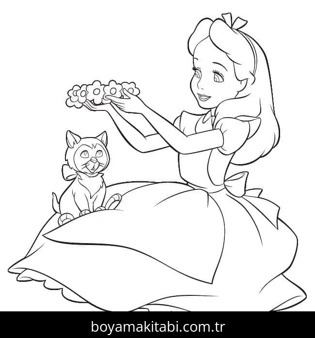 Alis Harikalar Diyarında temalı bu boyama sayfası çocuklar için el becerilerini geliştirir ve boyama çalışması bir etkinlik sunar. Ücretsiz olarak indirip yazdırabilir, evde keyifli bir boyama zamanı oluşturabilirsiniz.