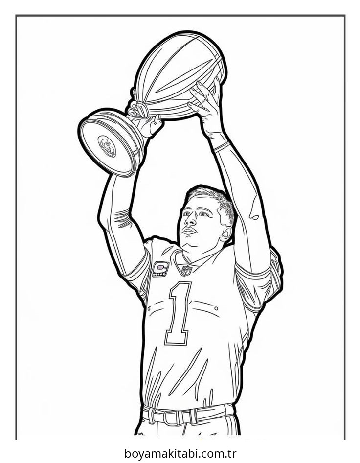 Amerikan Futbolu temalı bu boyama sayfası çocuklar için keyifli zaman ve renkli çizimler bir etkinlik sunar. Ücretsiz olarak indirip yazdırabilir, evde keyifli bir boyama zamanı oluşturabilirsiniz.