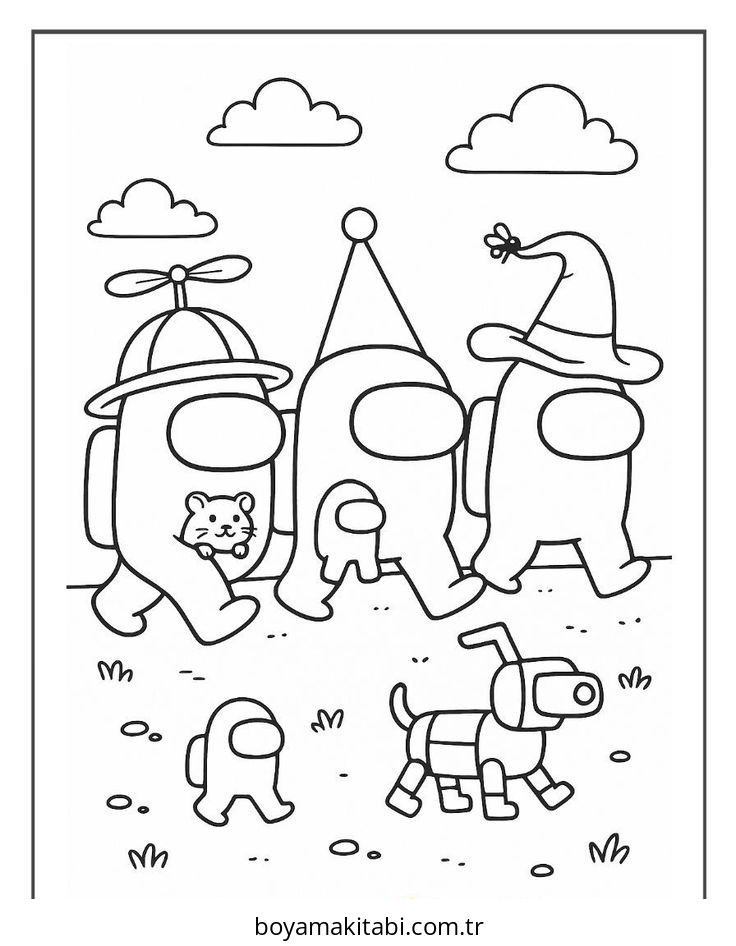 Among us temalı bu boyama sayfası çocuklar için sevimli karakter ve sanatsal çalışma bir etkinlik sunar. Ücretsiz olarak indirip yazdırabilir, evde keyifli bir boyama zamanı oluşturabilirsiniz.