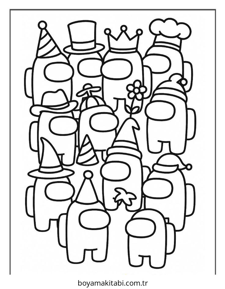 Among us temalı bu boyama sayfası çocuklar için çocuklar için ve çizgi film temalı bir etkinlik sunar. Ücretsiz olarak indirip yazdırabilir, evde keyifli bir boyama zamanı oluşturabilirsiniz.
