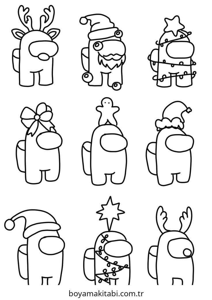 Among us temalı bu boyama sayfası çocuklar için sevimli karakter ve sanatsal çalışma bir etkinlik sunar. Ücretsiz olarak indirip yazdırabilir, evde keyifli bir boyama zamanı oluşturabilirsiniz.