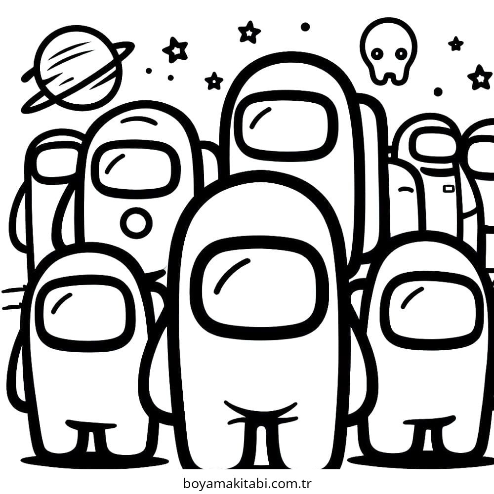 Among us temalı bu boyama sayfası çocuklar için yaratıcılık ve eğlenceli etkinlik bir etkinlik sunar. Ücretsiz olarak indirip yazdırabilir, evde keyifli bir boyama zamanı oluşturabilirsiniz.