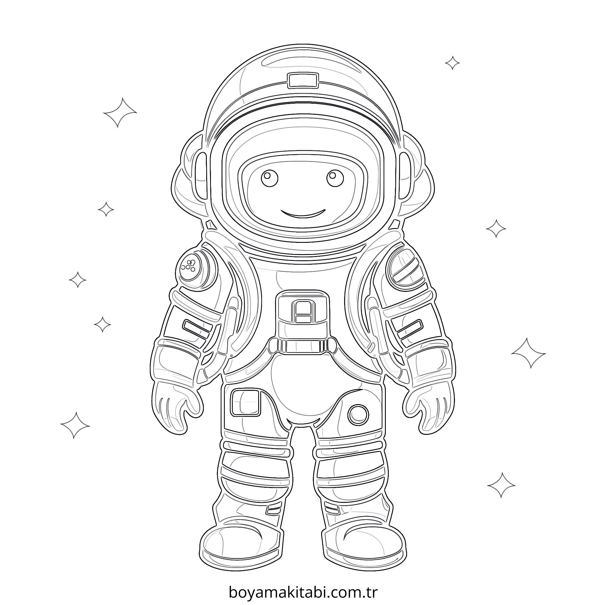 Astronot temalı bu boyama sayfası çocuklar için basit çizim ve kolay boyama bir etkinlik sunar. Ücretsiz olarak indirip yazdırabilir, evde keyifli bir boyama zamanı oluşturabilirsiniz.