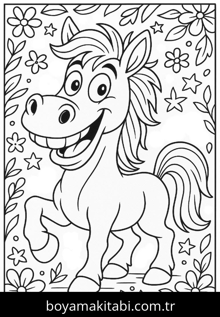 At Boyama Sayfaları ve Eğlenceli Etkinlikler. At Eğlenceli Boyama Sayfaları, At boyama sayfası, Horse coloring page, renkli, karakterli, minimal