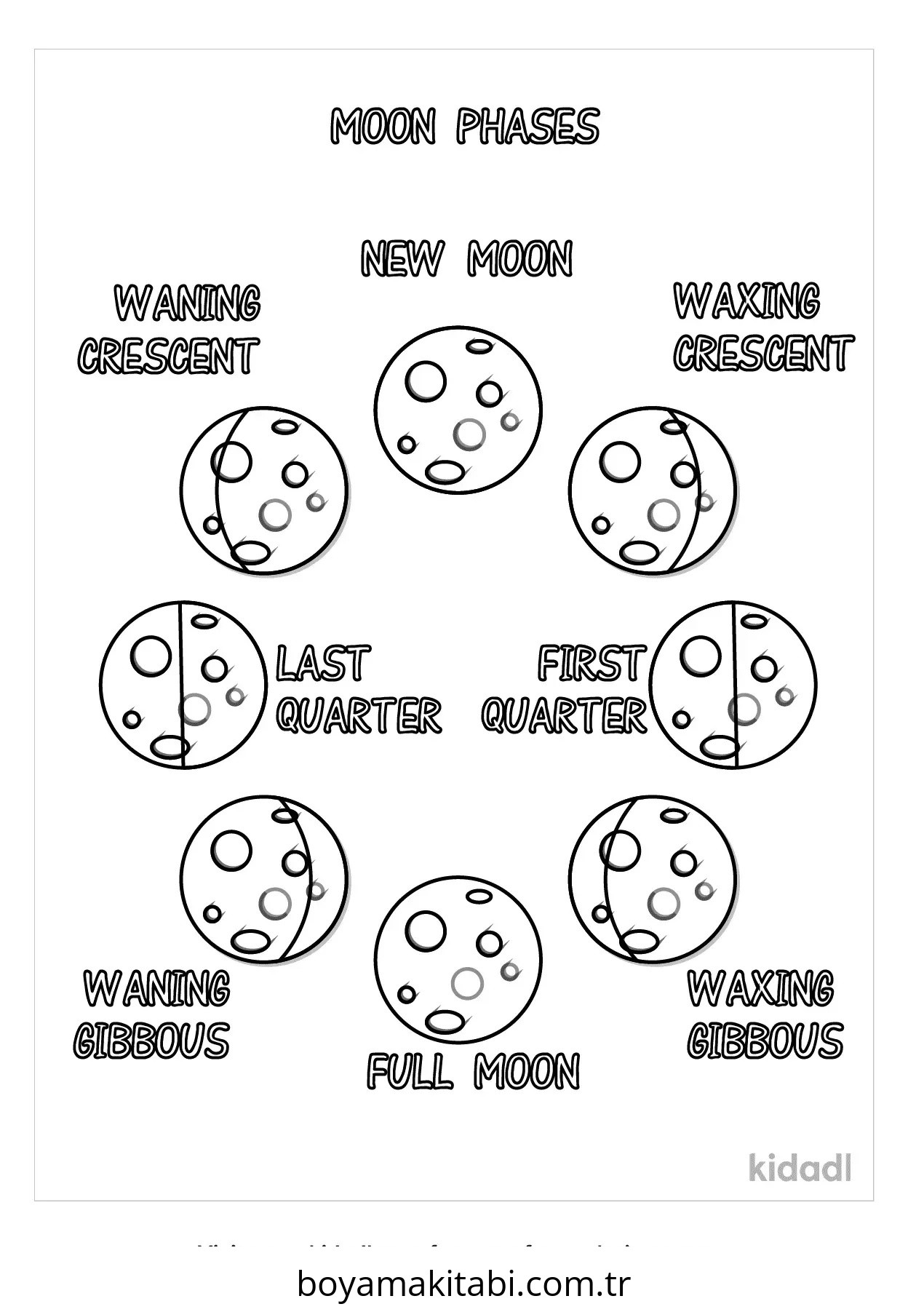 Ay temalı bu boyama sayfası çocuklar için eğitici aktivite ve yaratıcılık bir etkinlik sunar. Ücretsiz olarak indirip yazdırabilir, evde keyifli bir boyama zamanı oluşturabilirsiniz.