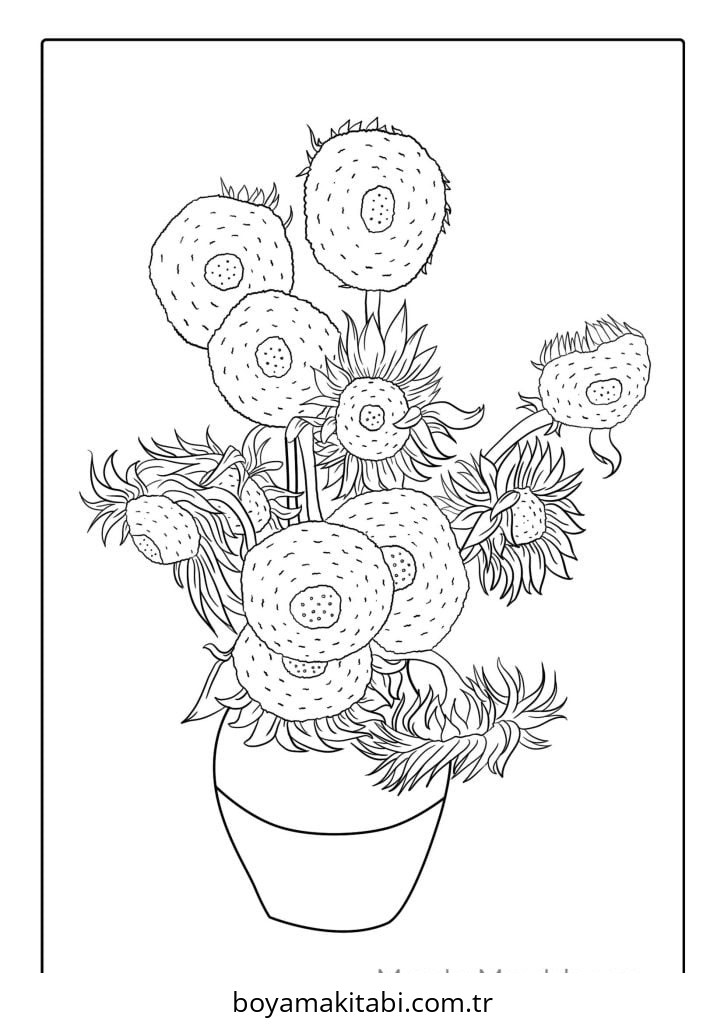 Ayçiçeği temalı bu boyama sayfası çocuklar için keyifli zaman ve renkli çizimler bir etkinlik sunar. Ücretsiz olarak indirip yazdırabilir, evde keyifli bir boyama zamanı oluşturabilirsiniz.