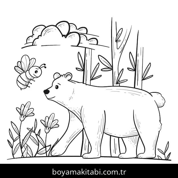 Ayı temalı bu boyama sayfası çocuklar için çocuklar için ve çizgi film temalı bir etkinlik sunar. Ücretsiz olarak indirip yazdırabilir, evde keyifli bir boyama zamanı oluşturabilirsiniz.
