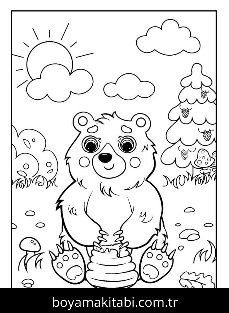 Ayı temalı bu boyama sayfası çocuklar için eğlenceli etkinlik ve el becerilerini geliştirir bir etkinlik sunar. Ücretsiz olarak indirip yazdırabilir, evde keyifli bir boyama zamanı oluşturabilirsiniz.