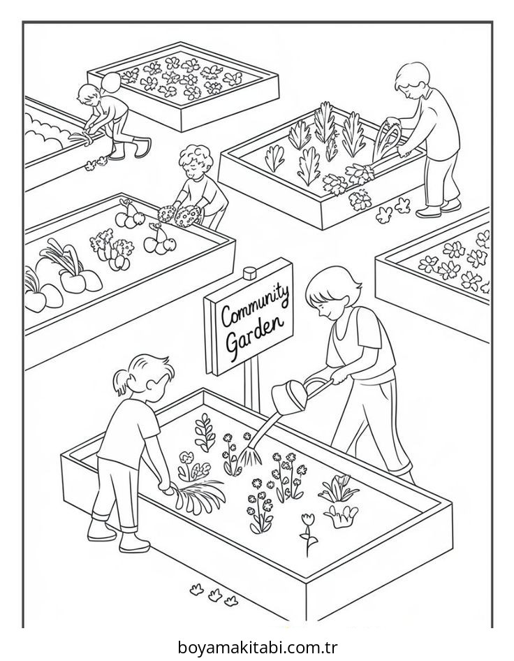 Bahçe temalı bu boyama sayfası çocuklar için çizgi film temalı ve basit çizim bir etkinlik sunar. Ücretsiz olarak indirip yazdırabilir, evde keyifli bir boyama zamanı oluşturabilirsiniz.