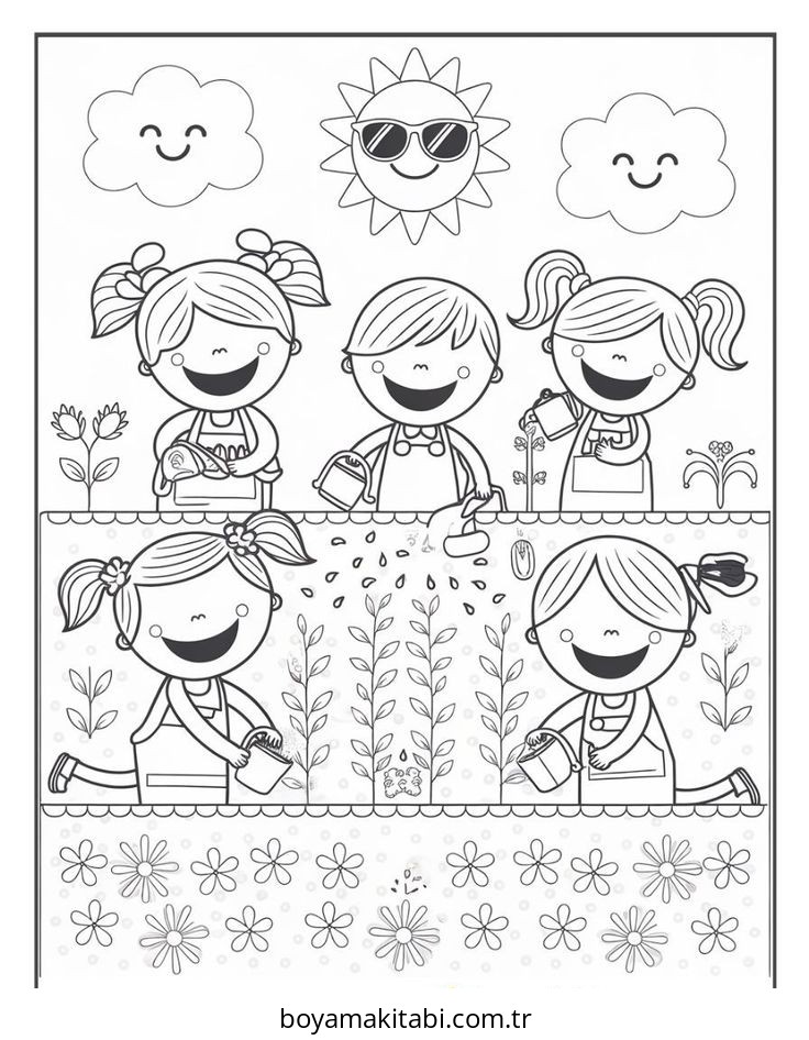 Bahçe temalı bu boyama sayfası çocuklar için eğlenceli etkinlik ve el becerilerini geliştirir bir etkinlik sunar. Ücretsiz olarak indirip yazdırabilir, evde keyifli bir boyama zamanı oluşturabilirsiniz.