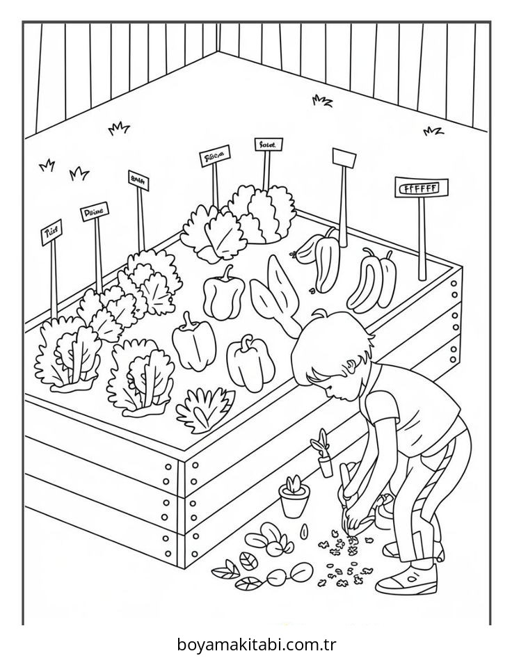 Bahçe temalı bu boyama sayfası çocuklar için yaratıcılığı geliştirir ve keyifli zaman bir etkinlik sunar. Ücretsiz olarak indirip yazdırabilir, evde keyifli bir boyama zamanı oluşturabilirsiniz.