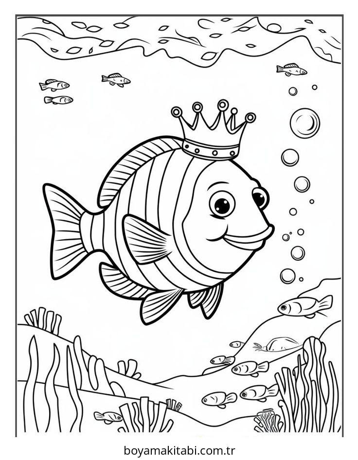Balık temalı bu boyama sayfası çocuklar için boyama çalışması ve yaratıcılığı geliştirir bir etkinlik sunar. Ücretsiz olarak indirip yazdırabilir, evde keyifli bir boyama zamanı oluşturabilirsiniz.