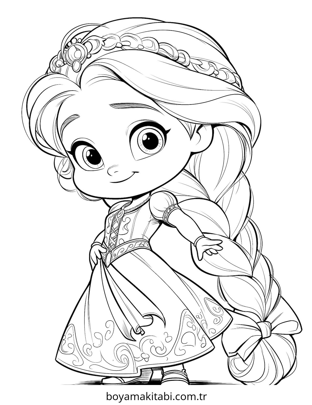Bebek Prenses temalı bu boyama sayfası çocuklar için basit çizim ve kolay boyama bir etkinlik sunar. Ücretsiz olarak indirip yazdırabilir, evde keyifli bir boyama zamanı oluşturabilirsiniz.