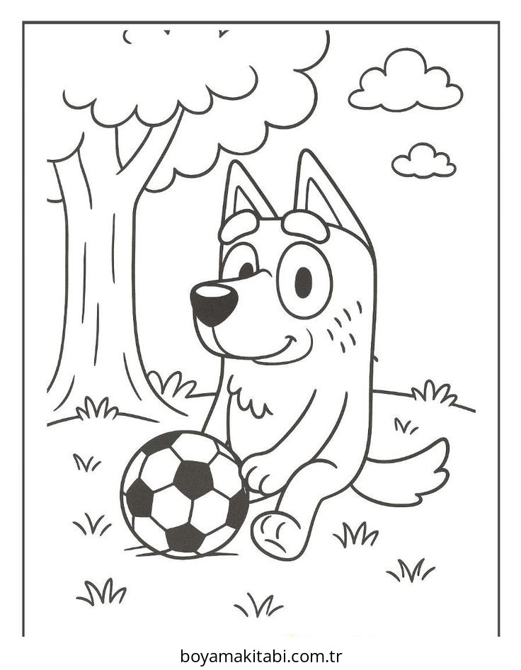 Bluey temalı bu boyama sayfası çocuklar için çocuklar için ve çizgi film temalı bir etkinlik sunar. Ücretsiz olarak indirip yazdırabilir, evde keyifli bir boyama zamanı oluşturabilirsiniz.