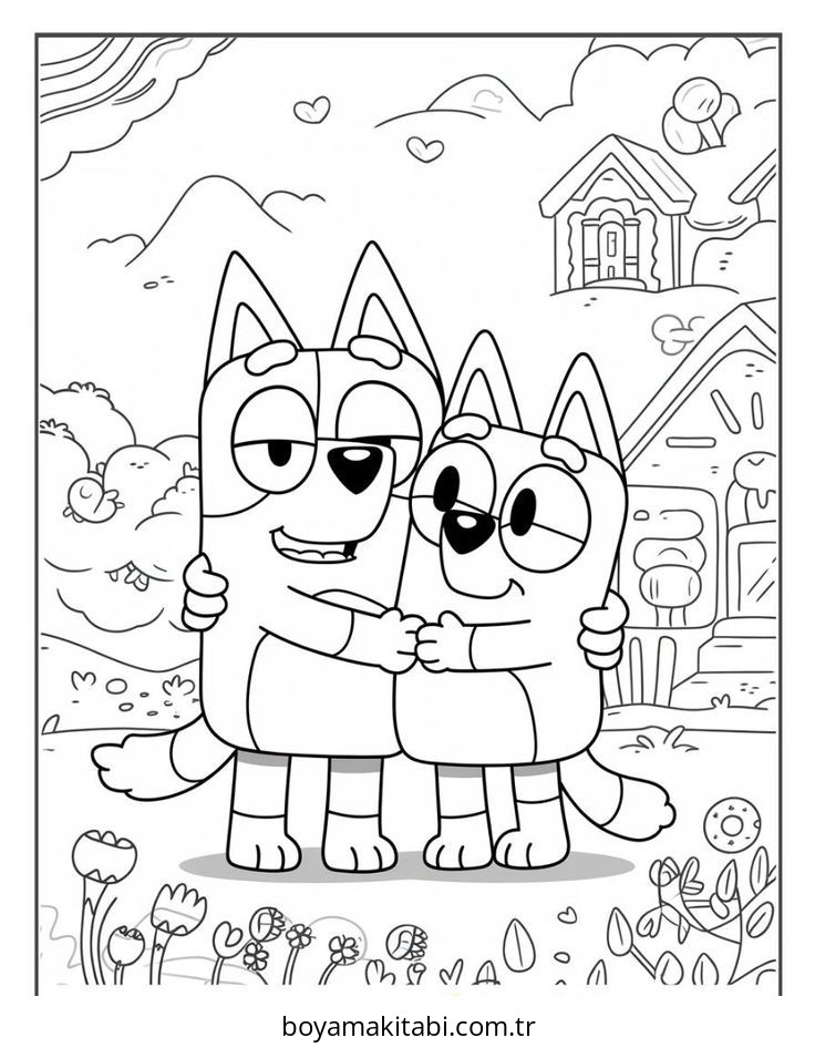 Bluey temalı bu boyama sayfası çocuklar için çocuk aktivitesi ve PDF indir bir etkinlik sunar. Ücretsiz olarak indirip yazdırabilir, evde keyifli bir boyama zamanı oluşturabilirsiniz.