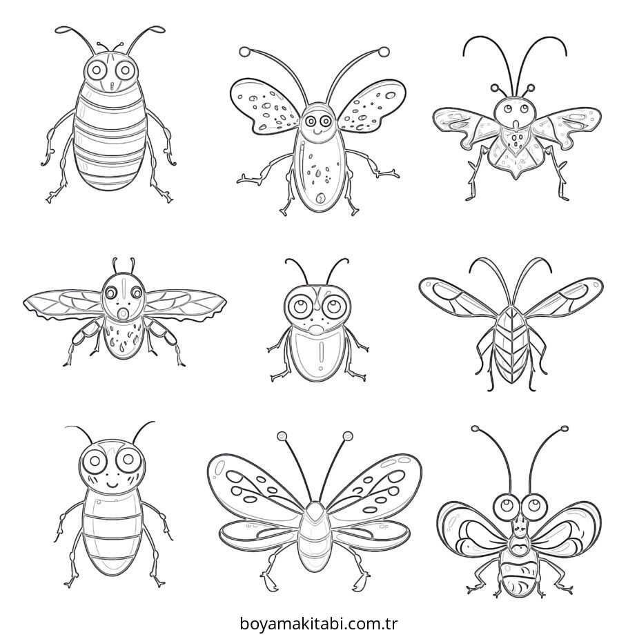 Böcek temalı bu boyama sayfası çocuklar için boyama etkinliği ve çocuk aktivitesi bir etkinlik sunar. Ücretsiz olarak indirip yazdırabilir, evde keyifli bir boyama zamanı oluşturabilirsiniz.