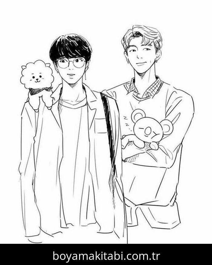 BTS temalı bu boyama sayfası çocuklar için PDF indir ve sevimli karakter bir etkinlik sunar. Ücretsiz olarak indirip yazdırabilir, evde keyifli bir boyama zamanı oluşturabilirsiniz.