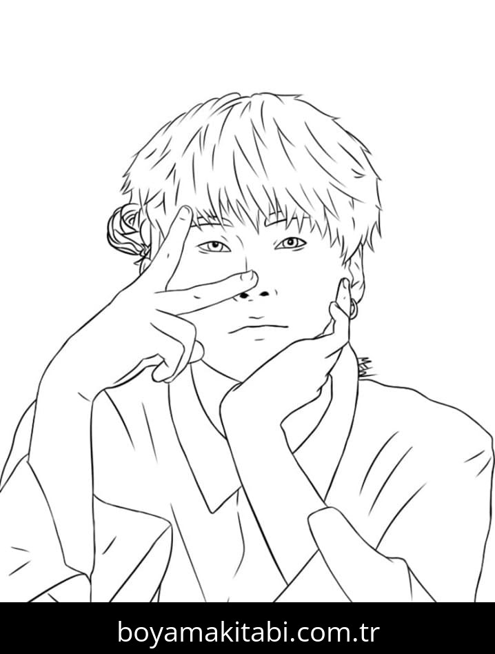 BTS temalı bu boyama sayfası çocuklar için çizgi film temalı ve basit çizim bir etkinlik sunar. Ücretsiz olarak indirip yazdırabilir, evde keyifli bir boyama zamanı oluşturabilirsiniz.