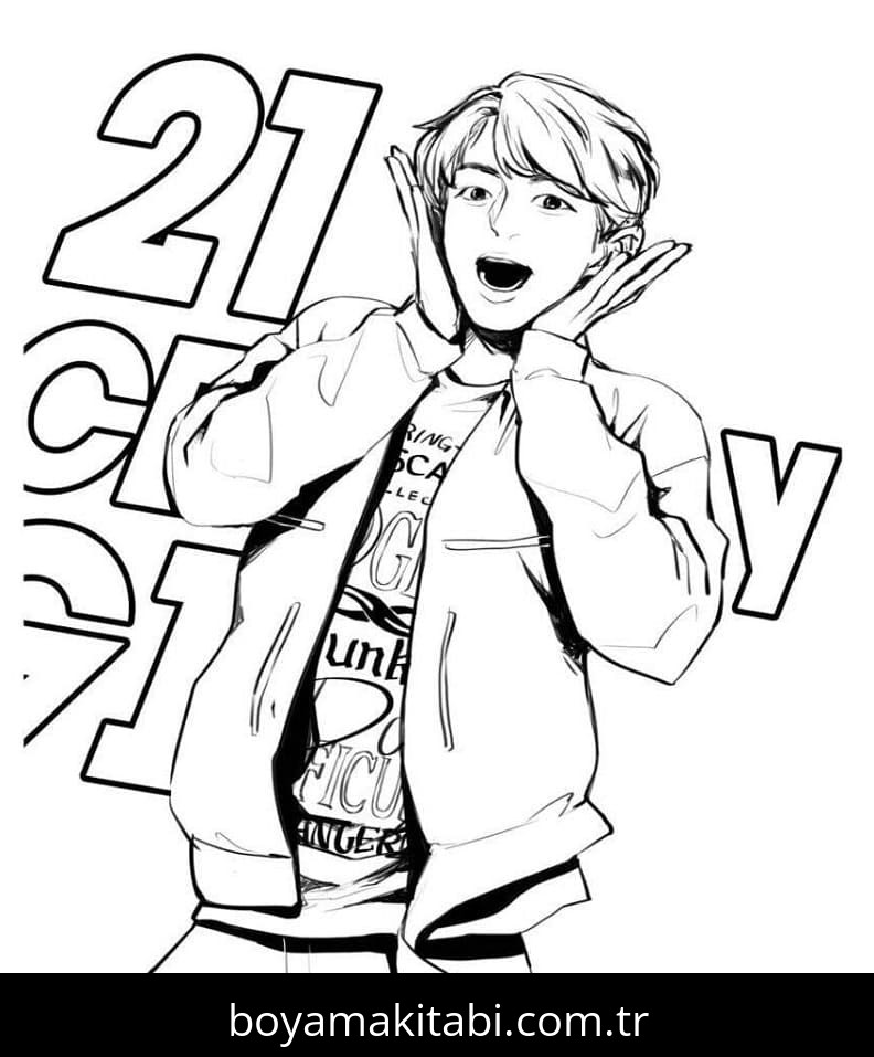 BTS temalı bu boyama sayfası çocuklar için çocuklar için ve çizgi film temalı bir etkinlik sunar. Ücretsiz olarak indirip yazdırabilir, evde keyifli bir boyama zamanı oluşturabilirsiniz.