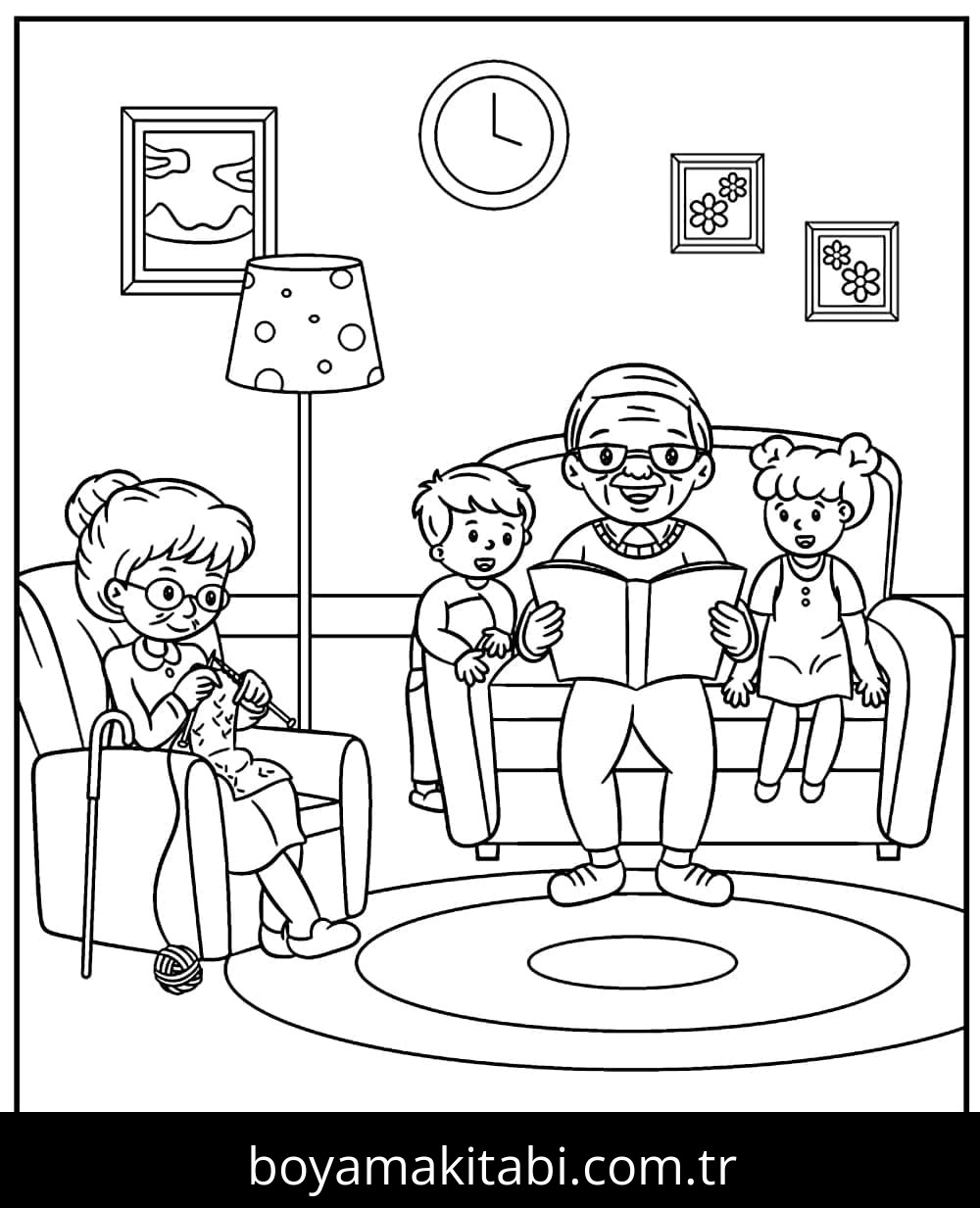 Büyükanne temalı bu boyama sayfası çocuklar için boyama çalışması ve yaratıcılığı geliştirir bir etkinlik sunar. Ücretsiz olarak indirip yazdırabilir, evde keyifli bir boyama zamanı oluşturabilirsiniz.