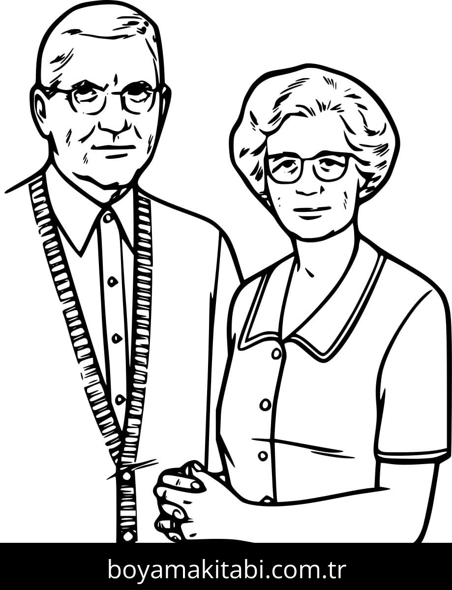 Büyükanne ve Büyükbaba Boyama Sayfası