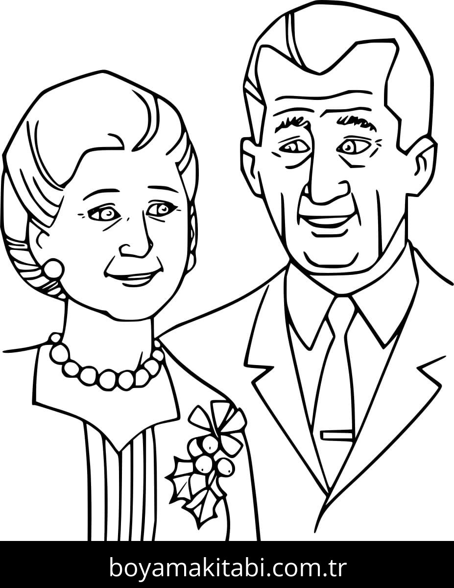 Büyükanne ve Büyükbaba Boyama Sayfası