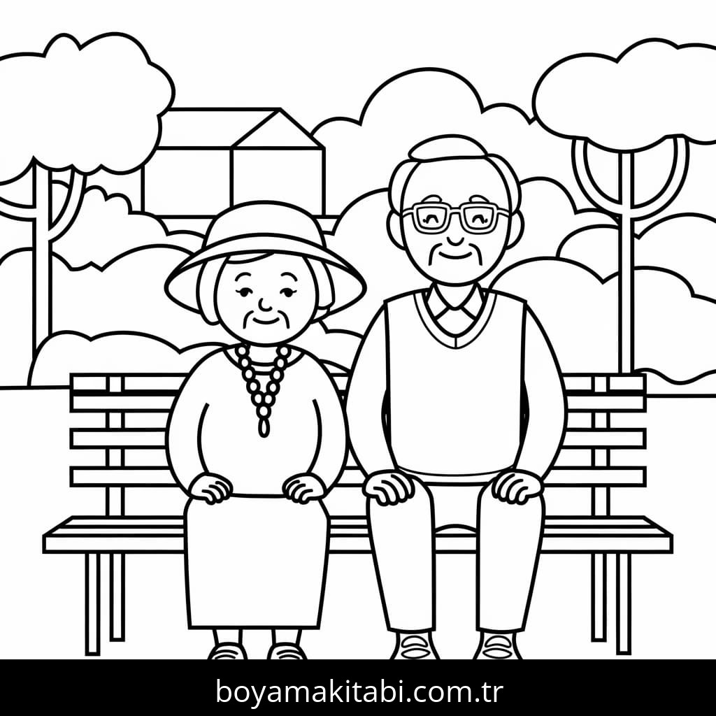 Büyükanne ve Büyükbaba Boyama Sayfası