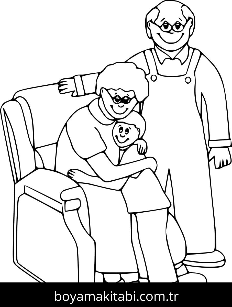 Büyükanne ve Büyükbaba Boyama Sayfası