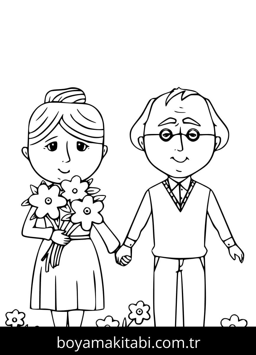 Büyükanne ve Büyükbaba Boyama Sayfası