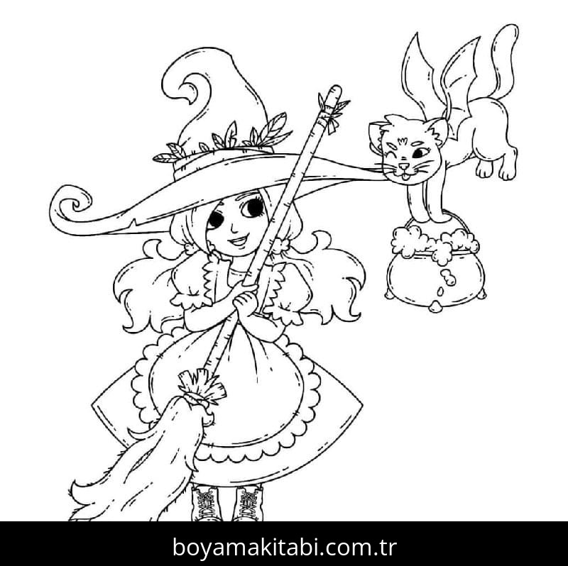 Cadı temalı bu boyama sayfası çocuklar için renkli çizimler ve okul öncesi bir etkinlik sunar. Ücretsiz olarak indirip yazdırabilir, evde keyifli bir boyama zamanı oluşturabilirsiniz.