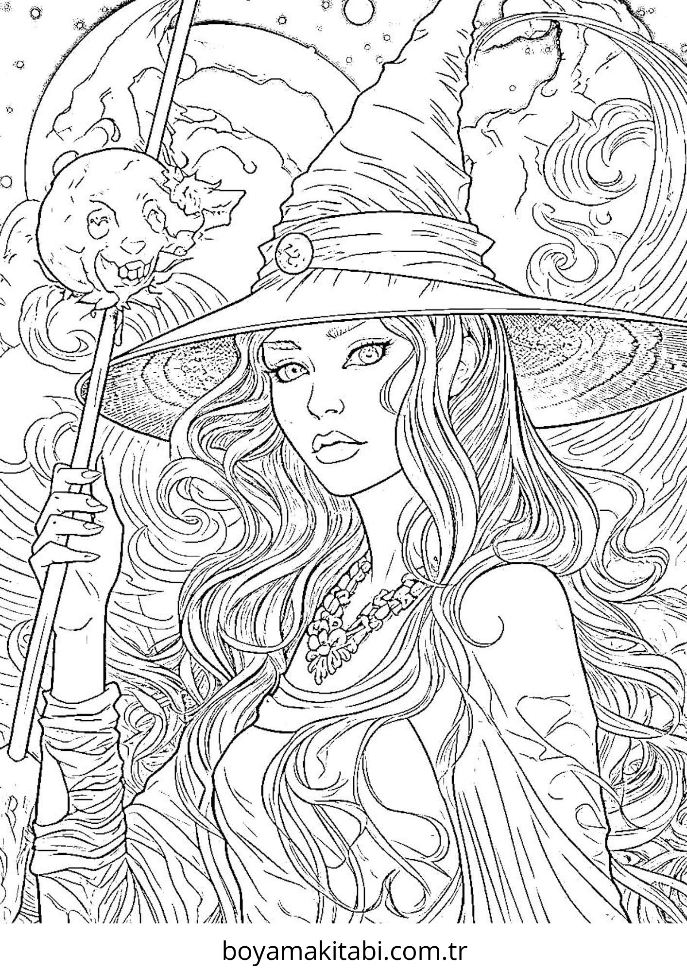 Cadı temalı bu boyama sayfası çocuklar için çocuk aktivitesi ve PDF indir bir etkinlik sunar. Ücretsiz olarak indirip yazdırabilir, evde keyifli bir boyama zamanı oluşturabilirsiniz.