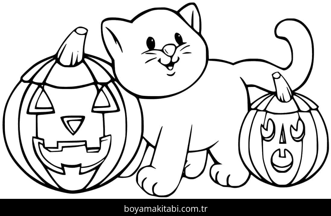 Cadılar Bayramı Kedisi Boyama Sayfası