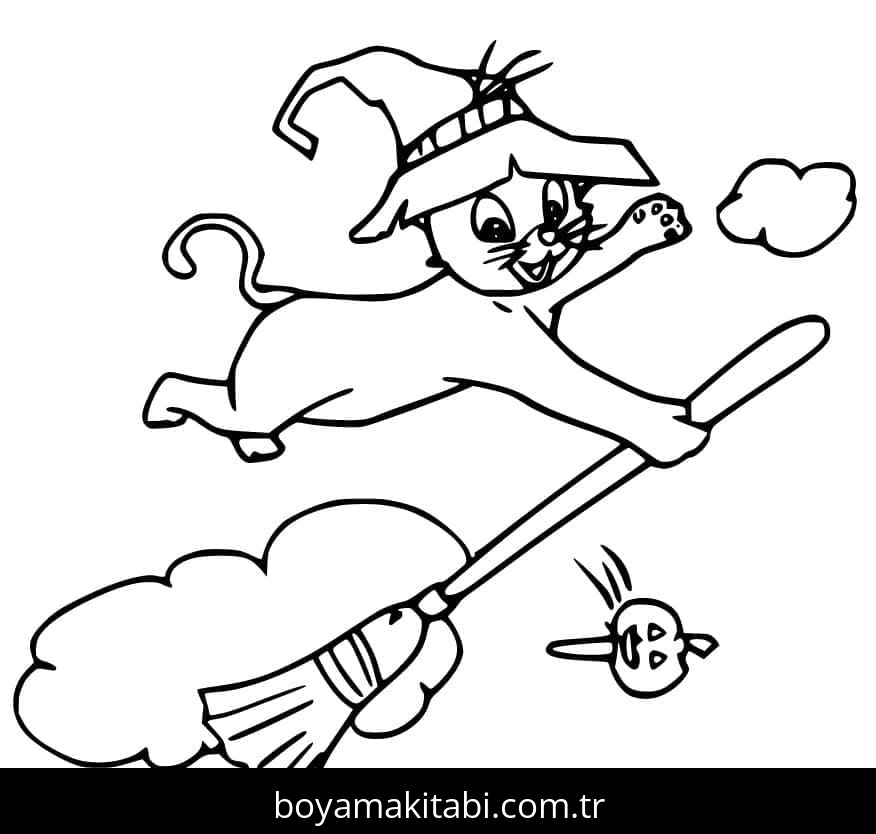Cadılar Bayramı Kedisi Boyama Sayfası