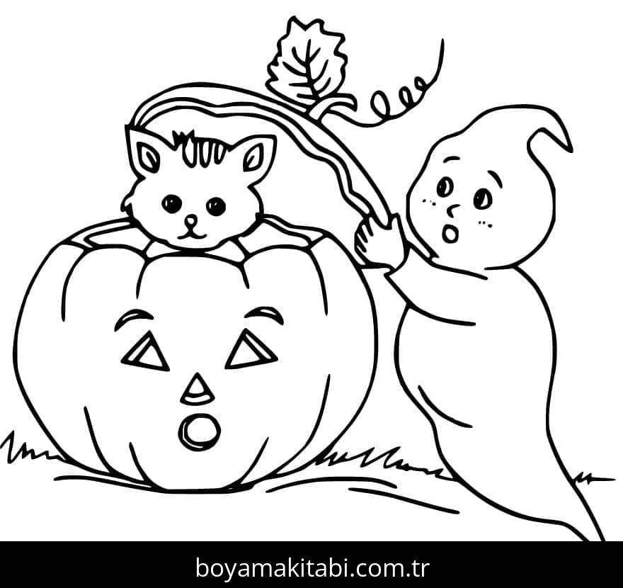 Cadılar Bayramı Kedisi Boyama Sayfası