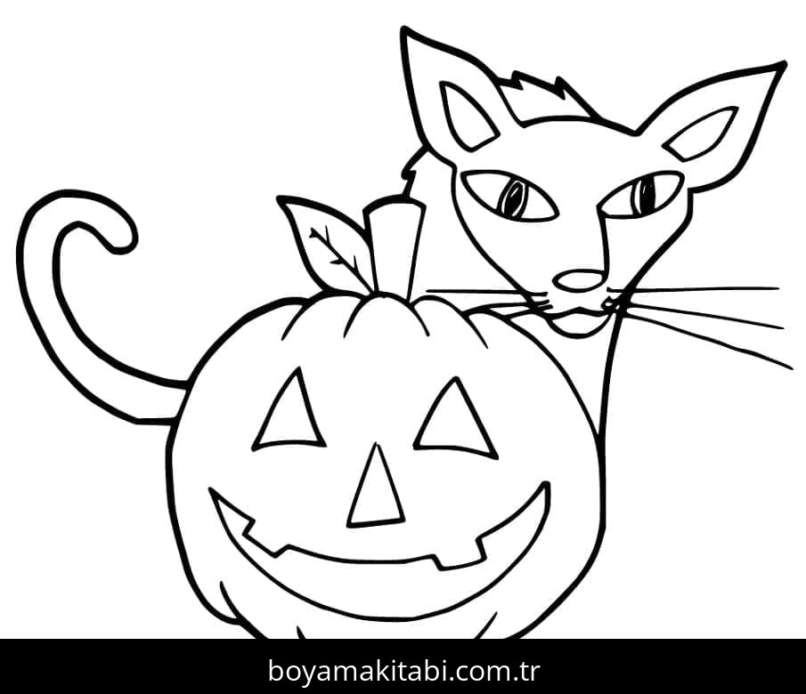 Cadılar Bayramı Kedisi Boyama Sayfası
