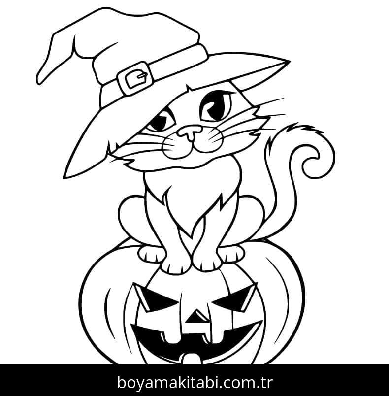 Cadılar Bayramı Kedisi Boyama Sayfası