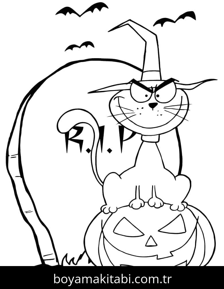 Cadılar Bayramı Kedisi Boyama Sayfası