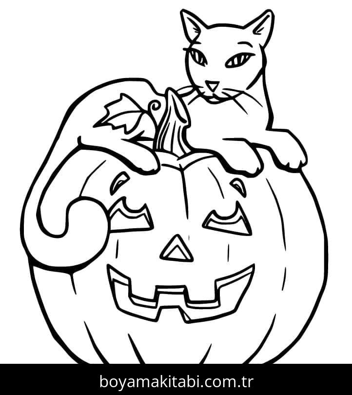 Cadılar Bayramı Kedisi Boyama Sayfası