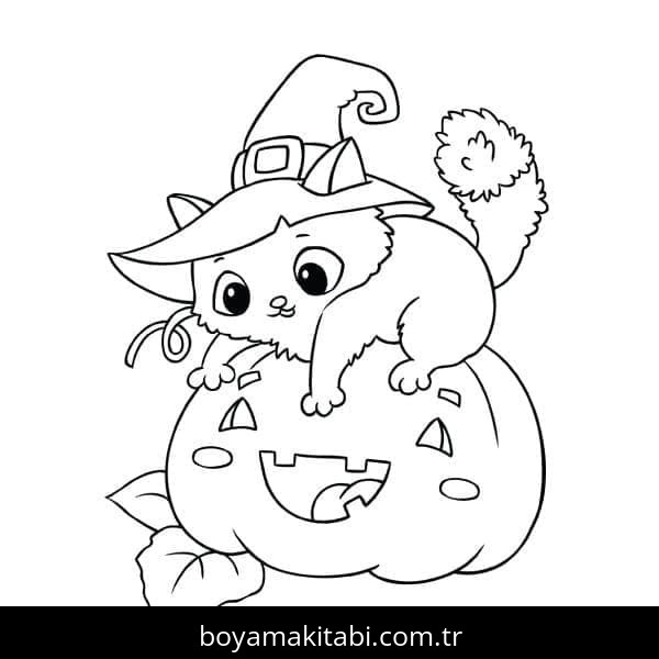 Cadılar Bayramı Kedisi Boyama Sayfası